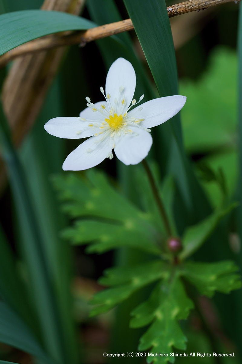 | 林床で日差しを浴びる芹葉黄蓮 こちらは雄花。 3月、α7M3 + FE 20mm F1.8 G。  |