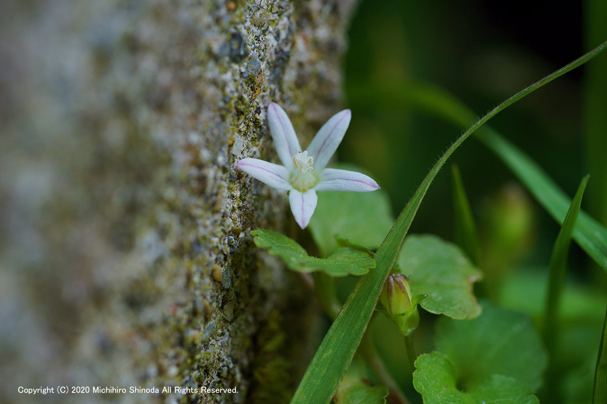 | 谷桔梗 花は5~6mm、背丈も5㎝ほどしかなく、うっかりすると見逃してしまう。 初めて気づいたのは7年ほど前だが、あまりにも小さくてどう撮ったらいいか迷って断念した覚えがある。 キキョウ科タニギキョウ属。 4月、α7M3 + FE 90mm F2.8 Macro G OSS。  |