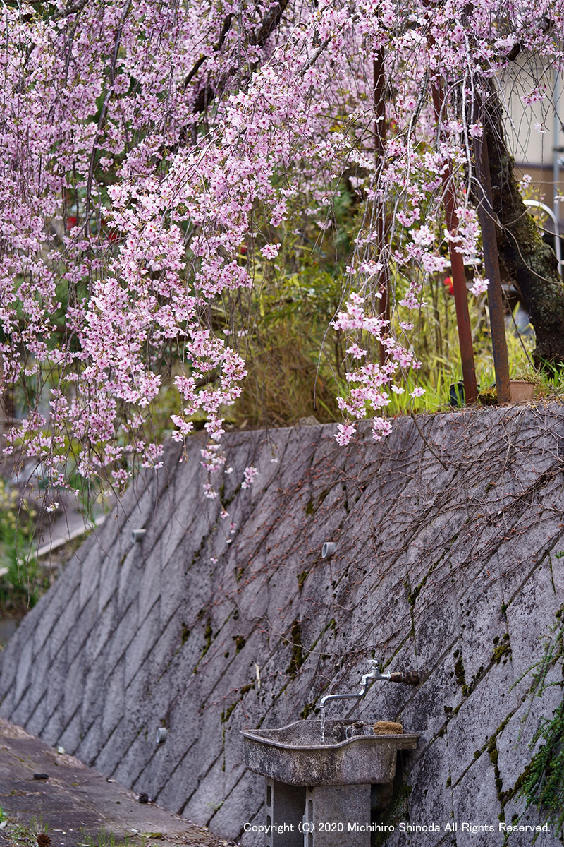 | 枝垂れ桜 村に咲く桜。 4月、α7M3 + FE 90mm F2.8 Macro G OSS。  |