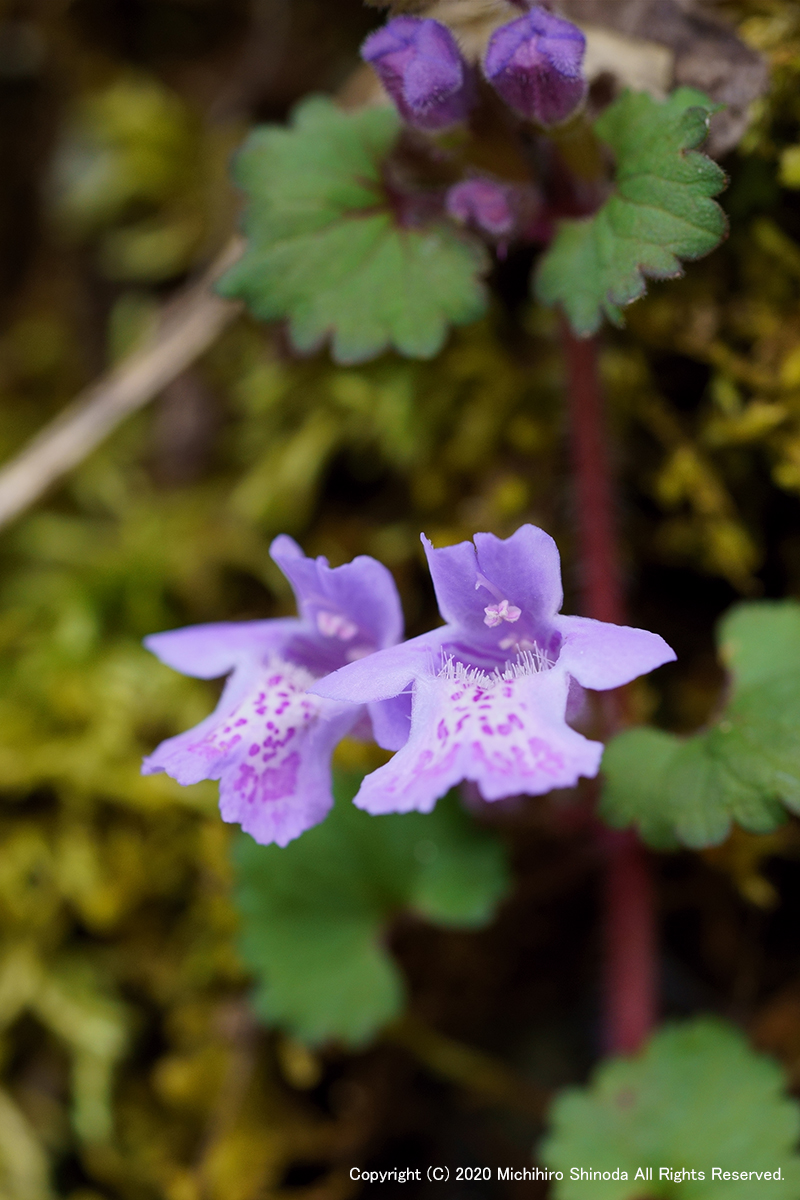 | 垣通し 春も進むと一面に咲き始める。 やや湿った所に多く、子どもの燗の虫に効くとされることからカントリソウとも呼ばれる。 シソ科カキドオシ属。 4月、α7M3 + FE 90mm F2.8 Macro G OSS。  |