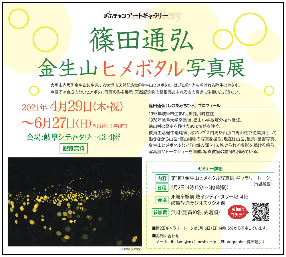 篠田通弘 金生山ヒメボタル写真展 のご案内