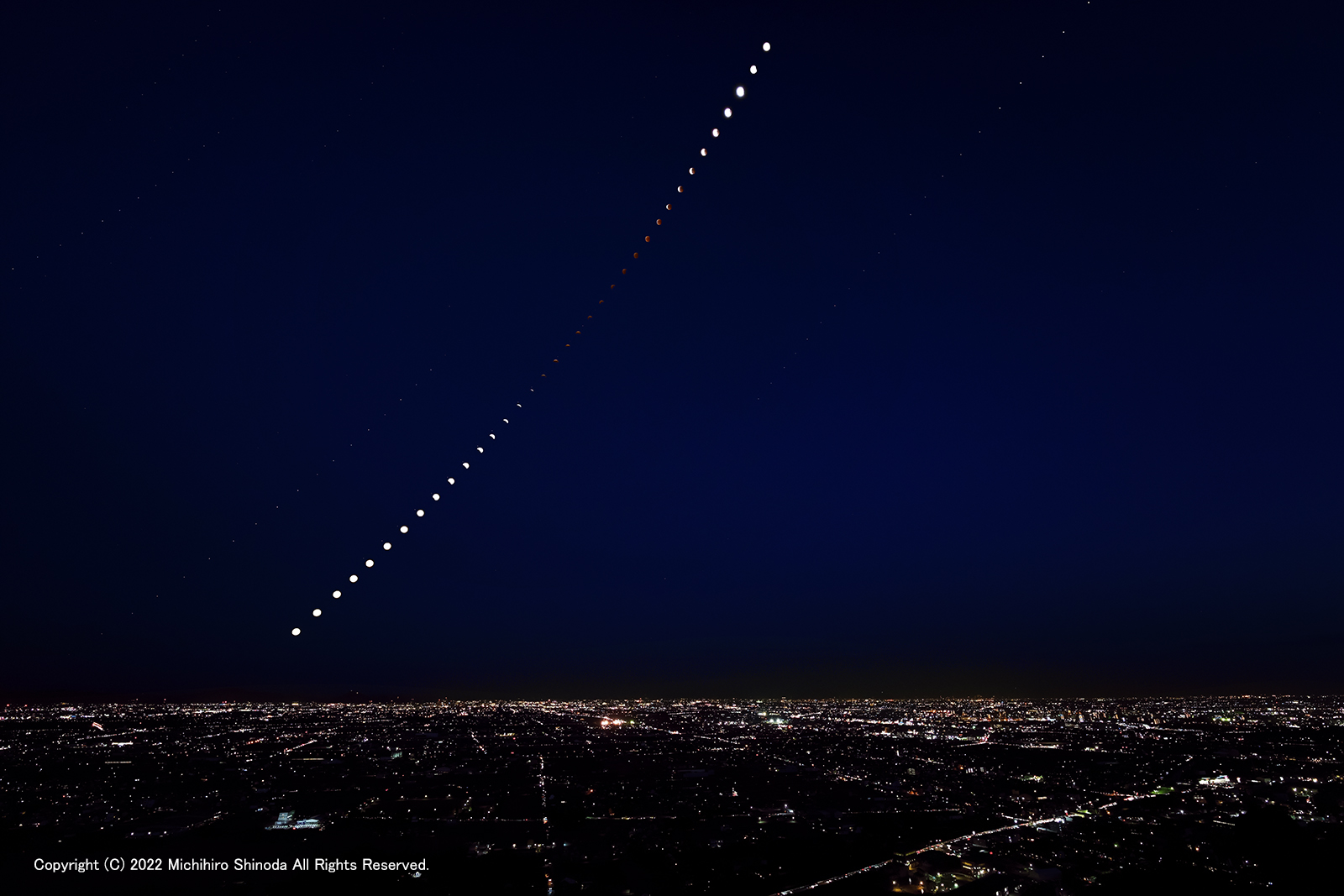 | 濃尾平野に浮かぶ皆既月食 2022年11月08日 20時28分 |