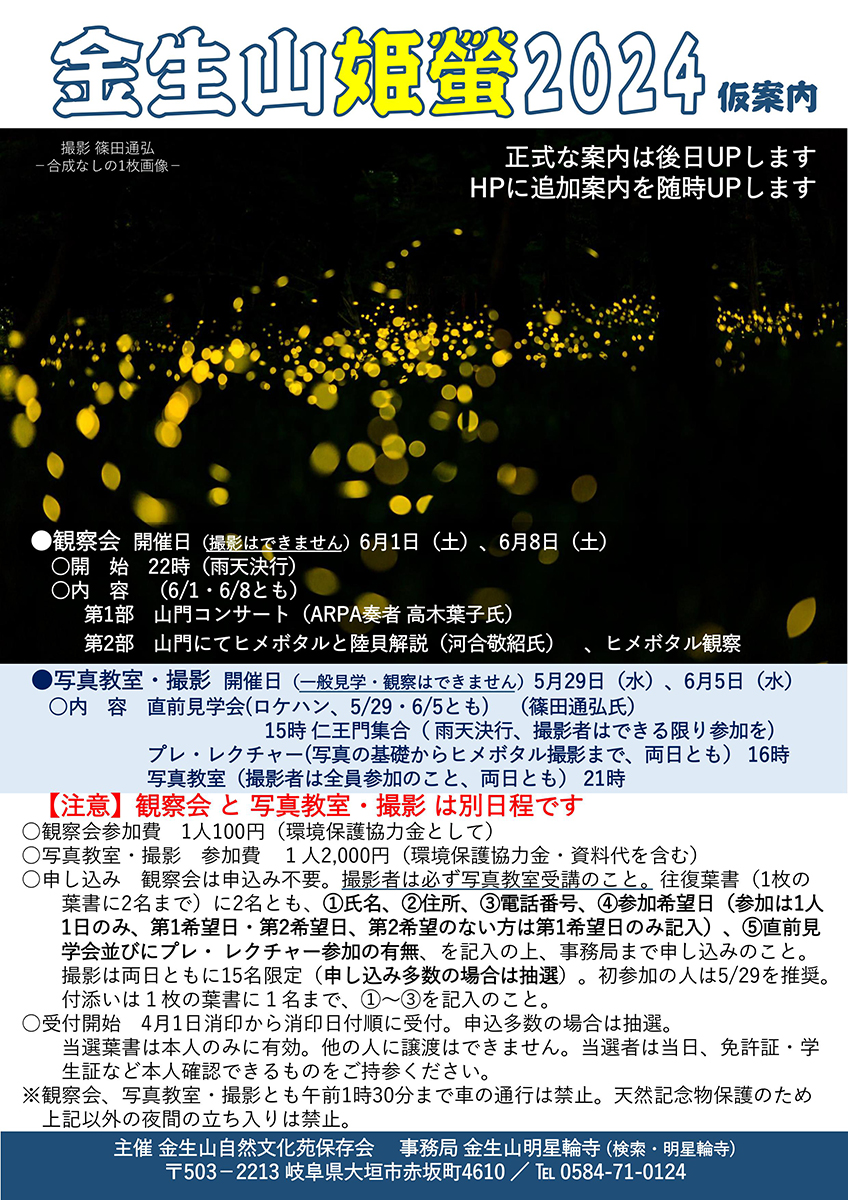 【金生山姫螢2024】 仮案内は以下の通りです(3/1)