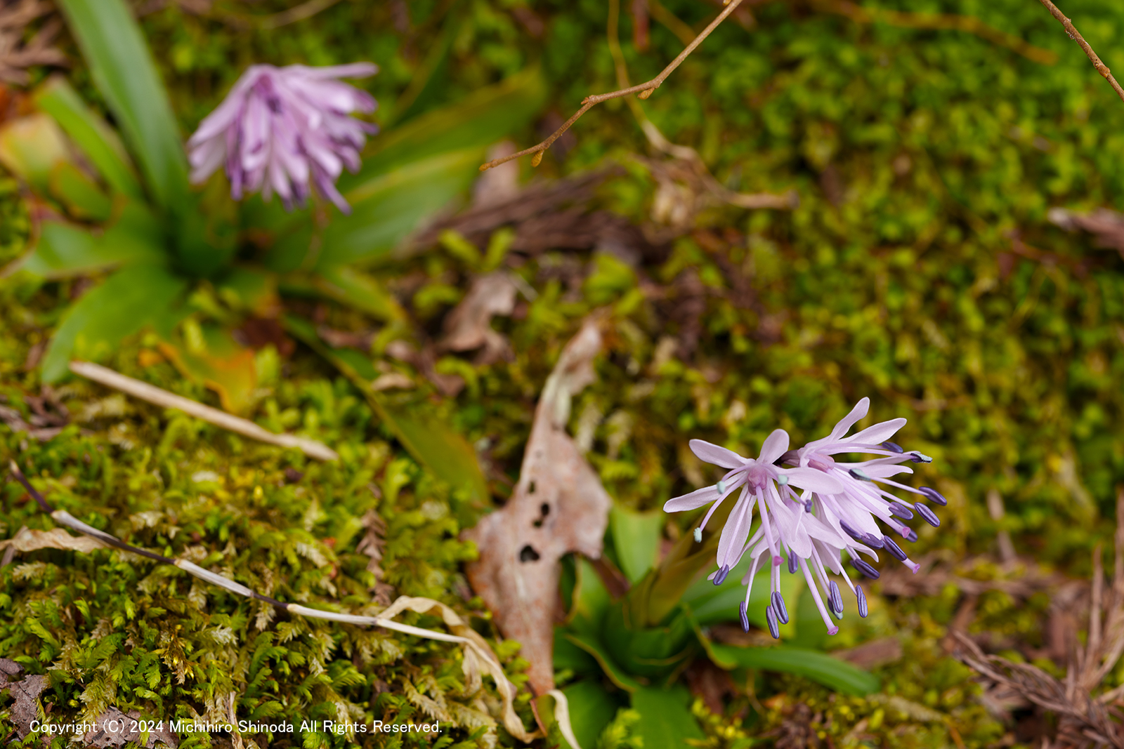 | ■ 猩々袴(ショウジョウバカマ) -揖斐谷- 揖斐谷では早春を代表する花 スプリング・エフェメラルとされることもあるが、一般的には春先から夏の間に光合成を行い、樹林が葉に覆われて林床が暗くなる頃には地上部分を枯らして地下で過ごす植物をスプリング・エフェメラルという。ショウジョウバカマは花の後も緑色の花被を残すのて、一般的なスプリング・エフェメラルとは異なる ショウジョウバカマの花の色には淡紅色、濃紫色、白色などさまざまなものがあり、花の後の丈は50㎝ほどにのばすものもある 高校2年生の春休み。研究会の仲間と大野町野の群集墳の分布調査に毎日通っていた。古墳を見つけては略測し、横穴式石室の開口方向をクリノメーターで測り、地形図に記録する作業を続けた。そのとき大学生のTさんがこの花を見つけて「これはきっと雪割草に違いない」と叫んだ。後日ショウジョウバカマという名を知ってしまったTさんは、それでも諦めきれずに「雪割草の方が似つかわしいよね」と、研究会の連絡紙に踏査報告とともに記したのだった。花に興味があったわけではない僕たちだったが、どういうわけか、みんながっかりしたのだった この花だけが春を告げていた。あの枯れ野原を、今でも思い出す 猩々袴ささやき咲きに花ふたつ 能村登四郎 ※ α7RM5 + FE 90mm F2.8 Macro G OSS |