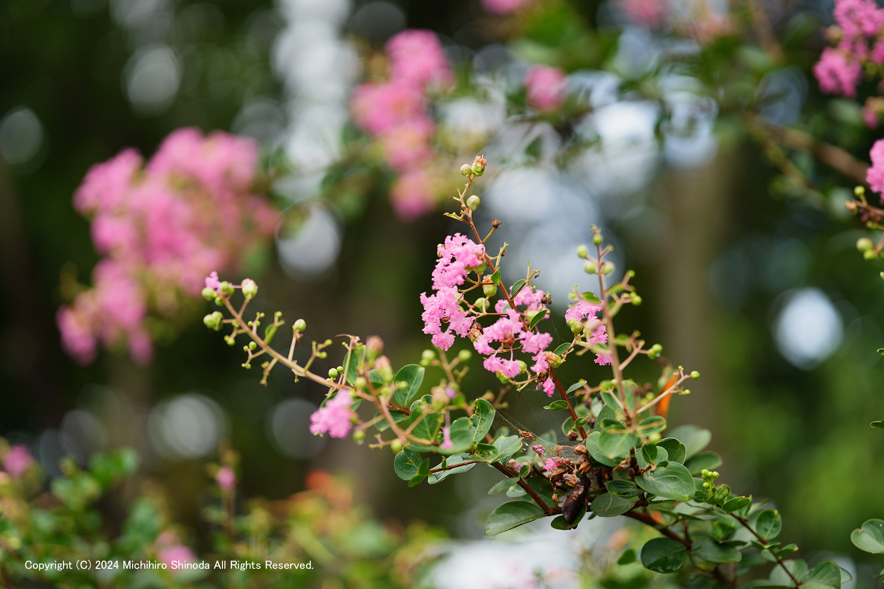 | 百日紅 季語は夏だとか ---------------------------------------------------- 85mm、ISO100、f1.4、1/1250秒、AUTO WB、Raw 高感度NRはoff、長秒時NRはoff、揖斐谷 SONY α7RM5 + FE 85mm F1.4 GM Ⅱ 2024年9月22日 |