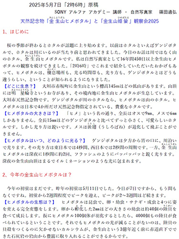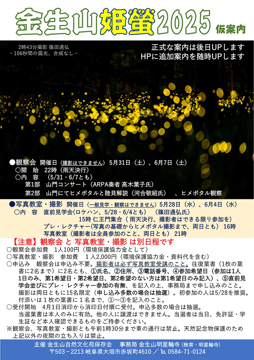 『金生山姫螢 2025』 写真教室・撮影会 ガイドブック 完成!(4/5)