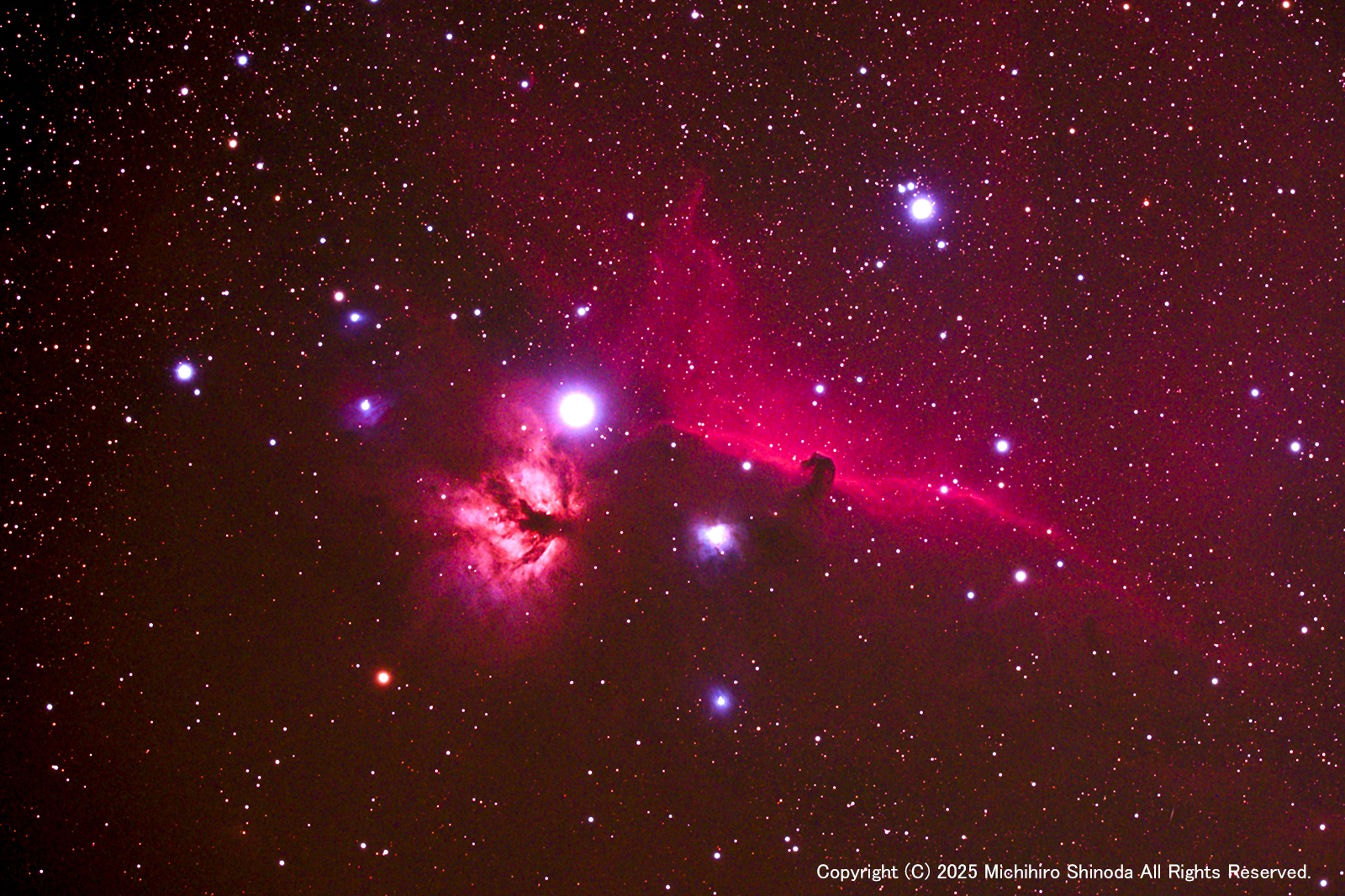 | ---------------------------------------------------- カメラ SONY α7M3(IR custom) 鏡 筒 SD81S(リングスペーサーに換装)、SDフラットナーHD+レデューサーHD、625mm×0.79(F7.7→6.1) 赤道儀 SXD2、ノータッチガイド ISO3200、露出時間 1530秒 (30秒×11枚、60秒×10枚、120秒×5枚、ダーク減算後加算コンポジット処理) 2025年01月25日20時12分から、揖斐谷 |