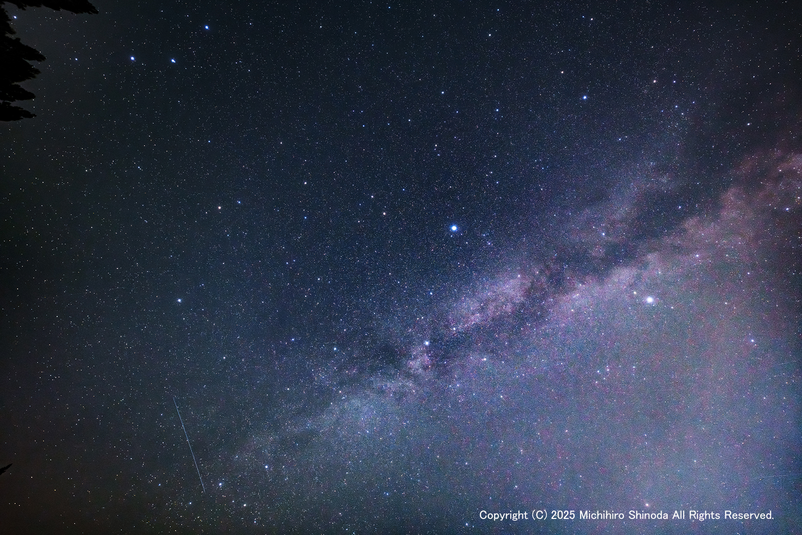 | みずがめ座η流星群 捉えられず この日の天文薄明開始が03時09分。あと14分ほどだが、長秒間露光で撮った上の写真では少しずつ明るくなっていることが分かる みずがめ座η流星群の極大予想は5月6日12時。南半球で最大の流星数となる同群だが、北半球の日本ではでは日の出前の2時間ほどしか撮影のチャンスはない。おまけに最も極大予想日が晴天は期待できないとなると、ひょっとしたらという期待をもって撮るしかない 美濃平野部で火星のM44への侵入を撮ってから揖斐谷へとんぼ返りし、01時17分にシャッターを切り始めた。天文薄明まで2時間ほどは撮影できる計算。春霞はあるが、天候はおおむね良好だった ラジオに耳を傾けながら2時間余りじっと東天から天頂にかけてを見上げ続けた。夜明けに近づくにつれ人工衛星の光跡が四方八方から横切る。年々増えていることは間違いない。上の写真でカシオペヤ座から北極星をかすめる光跡も人工衛星 散在流星は流れたが、みずがめ座η群に属するものは眼視では確認できなかった。撮影終了後にすべての画像を確認したが、画像識別できる群流星はなかった あと1日だけ天候がもってくれれば、、と思いを残しながら春の流星群観察・撮影を終了した 次に期待できそうなのはペルセウス座流星群。極大は8月13日05時と予想されているが、月齢は19で南中が02時から03時ころ。下弦前の月が煌々と撮らす「寝待ち月」で、なんとも残念と言うほかはない ---------------------------------------------------- 12mm、ISO3200、f2.8、30秒、マニュアルWB、LEE SP-31 ソフト №1、Raw 高感度NRはoff、長秒時NRはoff、赤道儀で恒星追尾撮影、揖斐谷 SONY α7RM5 + FE 12-24mm F2.8 GM 2025年05月05日02:55 |